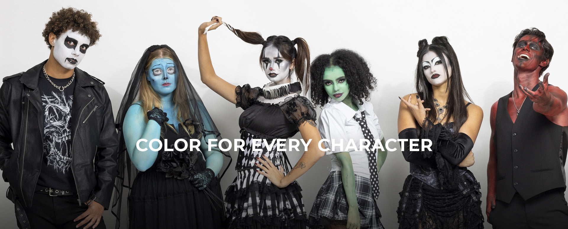 This 7 piece goth bundle GRAND EDITION includes our White Foundation, White Concealer, White Setting Powder (Setting Powder #9), Black Waterproof Liquid Eyeliner, Black Lip Liner (#39 Creamy Matte Lip Liner), Black Lip Stain, and Goth Highlight Contour Palette.